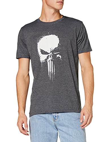 Marvel Knights Paintspray Skull Capucha, Gris (Dark Heather Grey Dkhgry), Small para Hombre