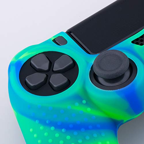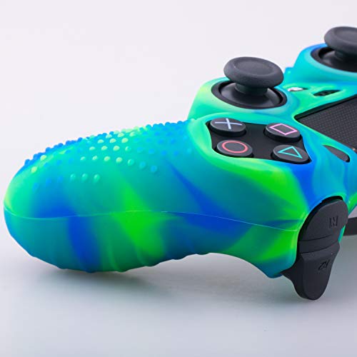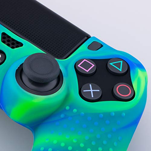 9CDeer 1 Pieza de Siliconas Tachonado Protector Manga Caso Cubierta Piel Cover Skin + 8 Puños de Pulgar Tapas Analógicas Thumb Grip + 2 a Prueba de Polvo Tapones para Mando PS4/Slim/Pro, Azul Verde