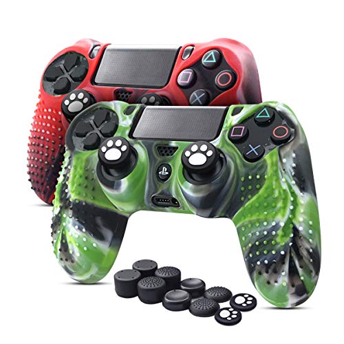 6amLifestyle Funda Protectora Antideslizante de Silicona para Mando PS4, Carcasa para Sony PS4 / PS4 Pro / PS4 Slim Controller (Rojo + Verde 2 Fundas de Mando PS4 + 10 Thumb Grips PS4)