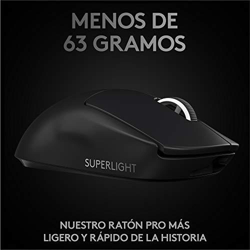 Logitech G PRO X SUPERLIGHT Ratón Gaming Inalámbrico, Captor HERO 25K, 25,600 DPI, Ultraligero con 63g, Peso Reducido, 5 Botones Programables, Batería Larga Duración, PC/Mac - Negro