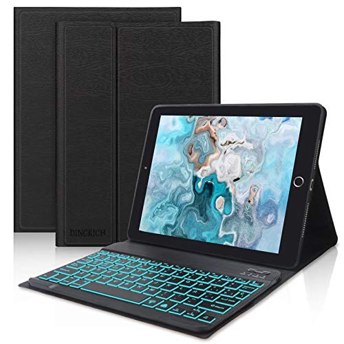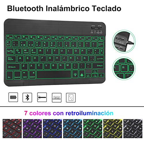 DINGRICH Funda Teclado Español para iPad 9 Generacion 2021,Bluetooth Retroiluminado de 7 Colores Teclado,para 8 Generación 2020/7 Generación 2019/iPad Pro 10.5 2017/Air 3 iPad 10.2,Negro
