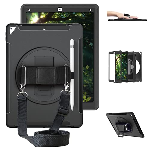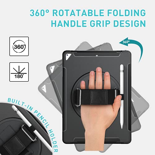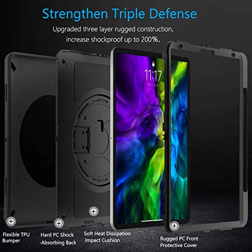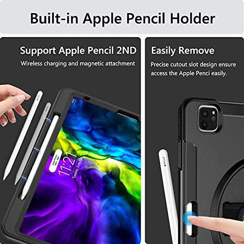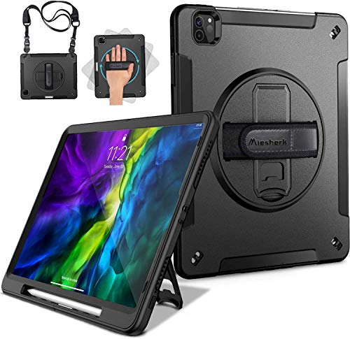 Miesherk Funda para iPad Pro 11 2020 y 2018 con Portalápiz + Correa de mano hombro + Soporte Giratorio, Protector de Cuerpo Completo a Prueba de Golpes para iPad Pro 11 pulgadas 2da Generación (Negro)