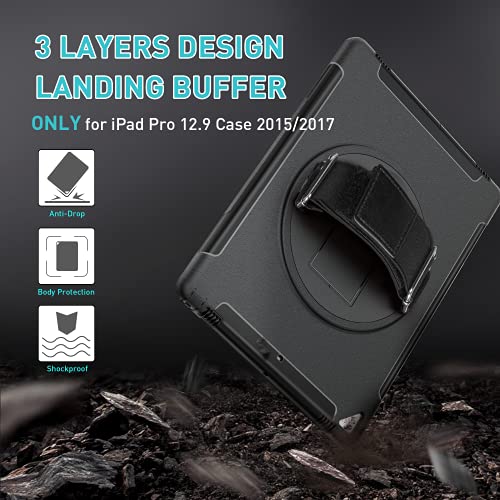 GRALIFCARE 2017/2015 Funda para iPad Pro 12.9 anticaídas con Soporte Giratorio 360, Correa de Mano, portalápices,Funda Protectora Resistente a caídas de Primera generación de Segunda generación