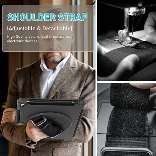 - 【CORREA DE MANO AJUSTABLE y CORREA DE HOMBRO DESMONTABLE】 La correa de mano tiene una experiencia agradable para que usted sostenga el iPad con una mano cuando se lo muestre a los demás. La correa de hombro es ultraportátil y extraíble, puede ayudarlo a llevar su iPad de una manera más segura durante las caminatas, los viajes, el asiento del automóvil y otras actividades al aire libre.