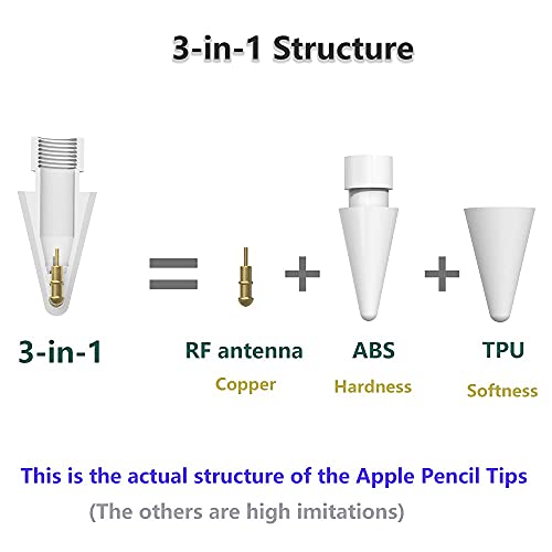 Puntas de lápiz para Apple Pencil de 1ª y 2ª generación, doble capa para iPad Stylus Nib, tanto suave como duro, utilizado durante 3 años, paquete de 6