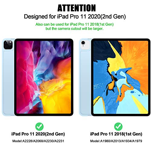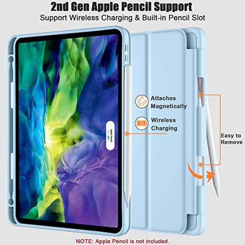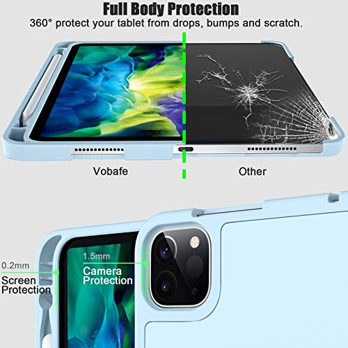 Vobafe Funda Compatible con iPad Pro 11 2020 y 2018, Funda Protectora de TPU con Portalápices para iPad Pro de 11 Pulgadas, Compatible con Segunda Generación Pencil, Protección Completa, Azul Claro