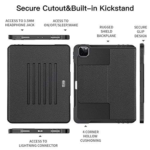 - 【PROTECCIÓN DE TRIPLE CAPA MEJORADA】 La funda para iPad Pro 11 2020 hecha de TPU flexible + cubierta rígida para PC, ha superado a prueba de caída de grado militar: MIL-810G. La estructura amortiguadora de tres capas proporciona una protección perfecta contra caídas, golpes e impactos accidentales. (Sin protector de pantalla incorporado). La superficie mate es antideslizante y todos los materiales cuentan con certificación ROHS propia y ecológica.