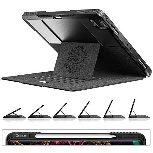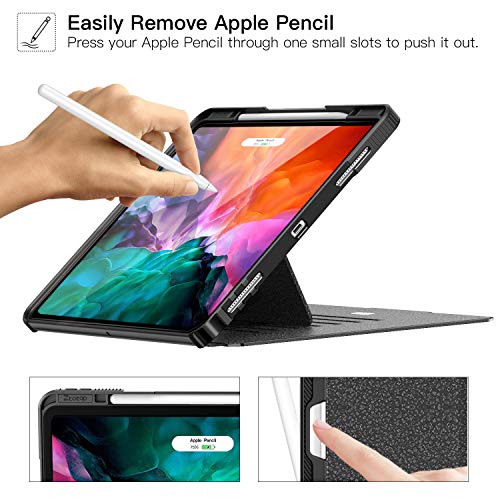 Ztotop Funda para iPad Pro de 12.9 pulgadas 2020/2018,protección con 6 ángulos de visión ajustables, compatible con iPad Pencil de segunda generación, Función automática de reposo / activación, Negro