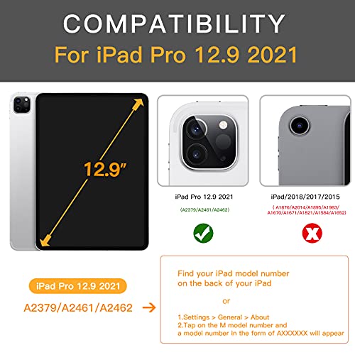- Nota: Diseñado para iPad Pro de 12.9 pulgadas 2021 versión 5ª generación. Nota: no es compatible con la versión 2017/2015 (2ª/1ª generación) y otros modelos de iPad.