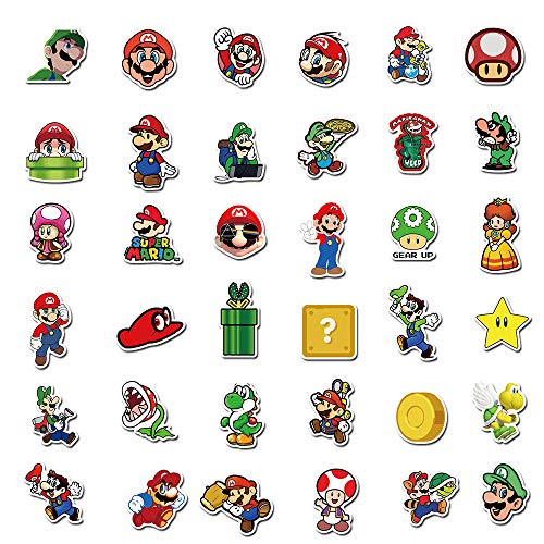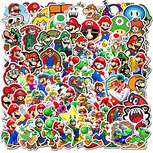 Pegatinas de Super Mario [100 Piezas] Anime a Prueba de Agua para portátil Botella de Agua Coche Taza Computadora Guitarra Monopatín Equipaje Bicicleta Bumper, Regalo para Niños