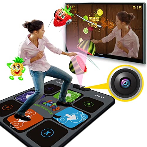 - ♫ 【2 modos de juego】 La alfombrilla de baile electrónica tiene 20 teclas de función, 2 modos de baile diferentes (MTV y dibujos animados), 55 canciones de baile, 3 modos de carrera (único y dual), 55 juegos clásicos, 36 juegos de control inalámbrico, 6 juegos somáticos únicos, además de incluir frutas en rodajas, fondo marino, batalla submarino, fotos, aritmética y deliciosos alimentos. Un regalo perfecto para el cumpleaños de tus hijos o Navidad.