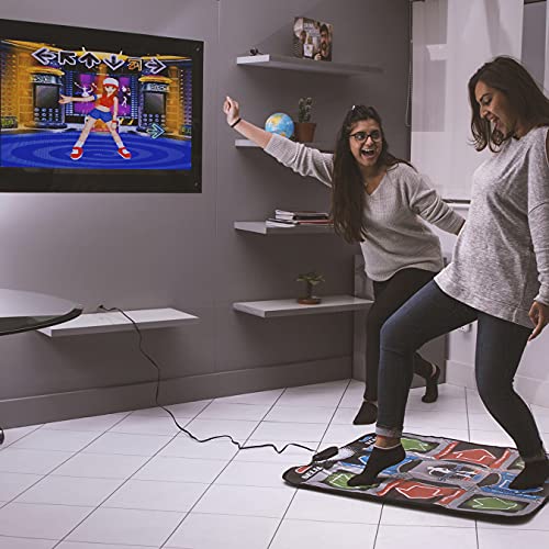 - Tamaño: Colchoneta de baile doble: 165 x92 cm. Esterilla de baile individual: 89x81cm. Tapete de baile iluminado: pisa, salta y salta a las flechas parpadeantes en este adictivo juego de baile. Sigue el ritmo de su música integrada o conecta tu propia pista favorita a través de ella. Una superficie de baile bien acolchada y grandes flechas luminosas hacen de esta la actividad perfecta de niño a adolescente. El sistema de programa de esta esterilla de baile está en inglés.