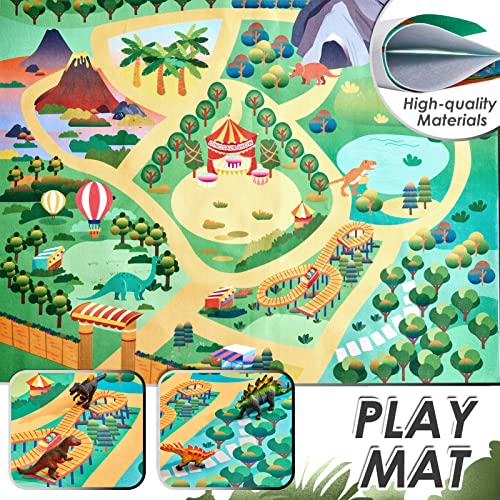 - Tapete de juego de 88 × 68 cm. Hecho de material no tejido, más duradero. Hay volcanes, bosques y otras escenas en el mapa, que muestran un parque de dinosaurios completo. Tiene capacidad para 2-4 niños al mismo tiempo.