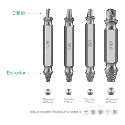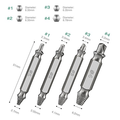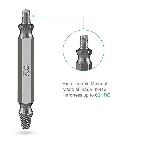 - ➧【Ampliamente Utilizado】 - El extractor 5Pcs (n. ° 1, n. ° 2, n. ° 3, n. ° 4 y n. ° 2) (n. ° 2 adicional para respaldo) se puede utilizar con cualquier taladro y tornillo o tamaño de perno. Es compatible con diferentes tipos de tornillos