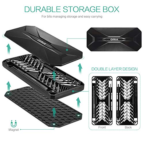 Juego de Destornilladores de Precisión, ORIA 50 en 1 Magnético Kit Herramientascon 48 Puntas de Destornillador de Acero S2 Largas, Almacenamiento de Doble Capa, Kit de Destornillador para PC, Portátil