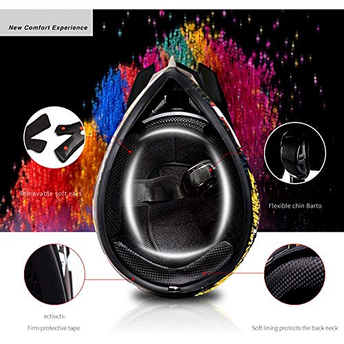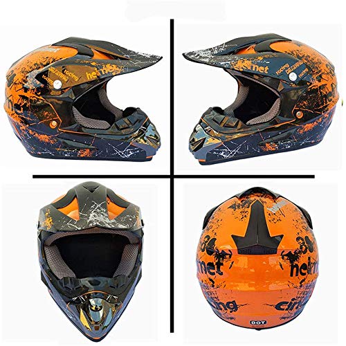 Juego de casco de motocross, casco de moto, con certificación DOT, casco para downhill, para niños, para BMX, MTB, Quad, Enduro, ATV, Roller (E,S (55-56 cm)