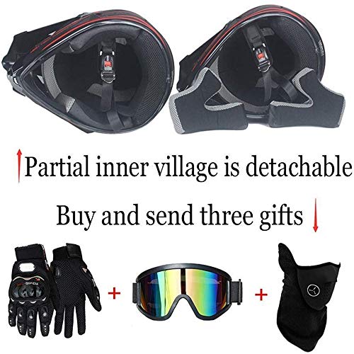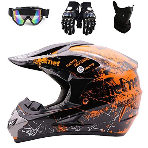 JCLDG Motos Motocross Cascos, 4pcs Juego de Casco de Moto + Gafas + Guantes de Motocicleta + Mascarilla, para Niños Hombre Mujer ATV MTB BMX Quad Bicicleta Casco de Kart,S