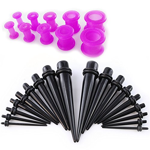 18 pc negro juego de en forma de cono 1.6mm-10mm y 10 pc morado para los oídos de silicona túnel 4mm-10mm indicadores Kit juego de expansor de acrílico