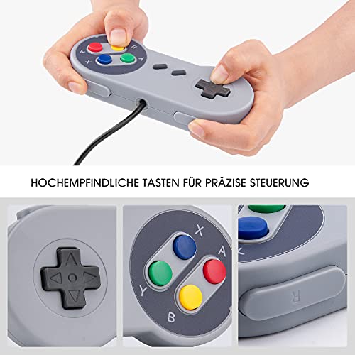 Rii GP100 SNES Retro USB Super Nintendo Controller, USB PC Controller, Raspberry Pi Controller for Windows PC / MAC / Raspberry Pi (2 Pack) (Grey)