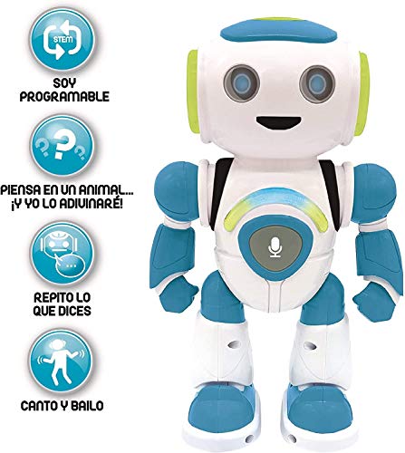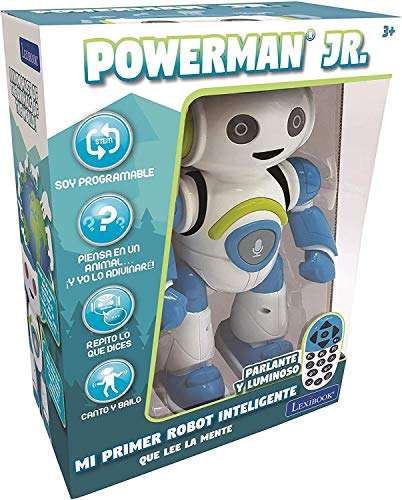 LEXIBOOK Robot Inteligente Powerman Junior Educativo e Interactivo, Lee la Mente, Baila, Toca Musica, Repite Las Frases, Mando a Distancia, Juguete a Partir de 3 años, Azul/Blanco (ROB20ES), Color