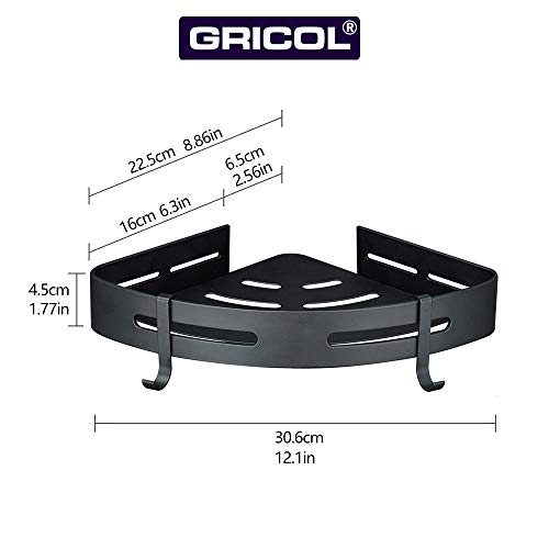 GRICOL Estante para Ducha Sin Taladrar de Aluminio Aeronáutico Estanteria Antioxidante Autoadhesivo para Artículos de Baño (Negro)