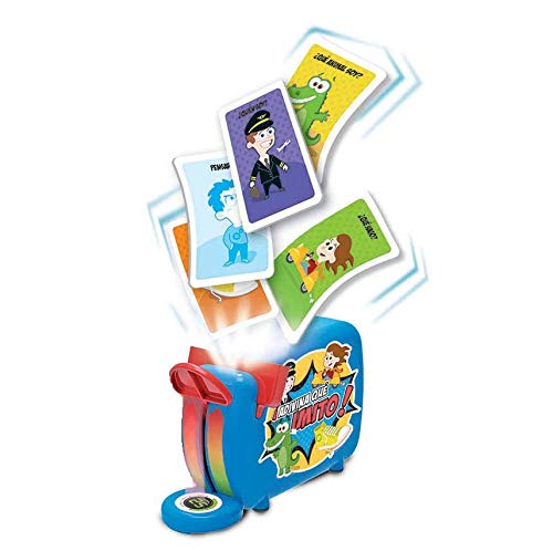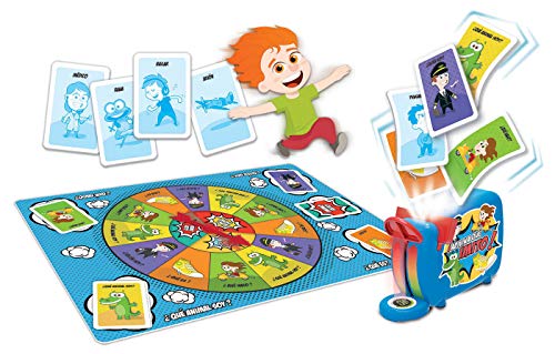- Contiene 1 tablero de juego con la ruleta, 1 base Mimo Locura, 200 tarjetas con personajes y objetos a imitar, reglas de juego