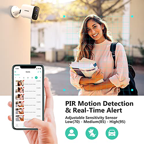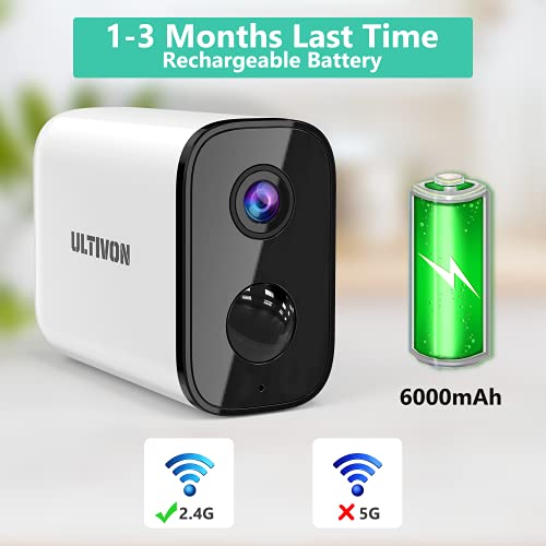 - 【BATERÍA RECARGABLE DE 6000mAh】Esta cámara de seguridad inalámbrica para exteriores equipado con la batería recargable de 6000mAh que puede durar de 2 a 4 meses después de carga completa. La cámara ip wifi Ultivon les ayuda a deshacerles de problemas de los cables, la elección perfecta para monitorear la villa, el hogar, la oficina, la tienda, el hotel, el almacén, la escuela o en cualquier otro lugar