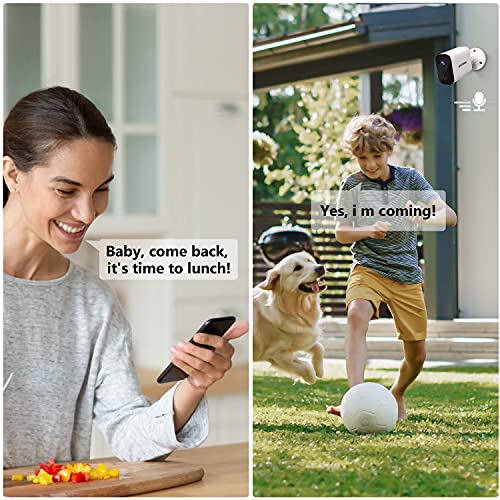 - 【AUDIO DE 2 VÍAS Y ALMACENAMIENTO】Esta cámara de vigilancia wifi 1080p con audio bidireccional le permite usar la APP móvil para hablar con visitantes externos, lo que le brinda un hogar seguro y cómodo; Soporta almacenamiento en la tarjeta micro SD (Tarjeta NO incluida en el paquete, hasta 128GB)