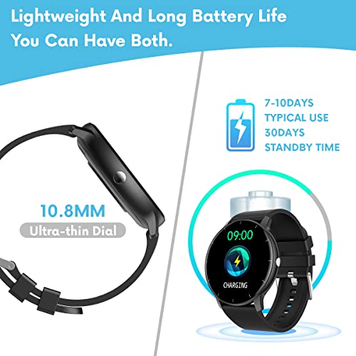 - ⌚【Relojes de moda】El reloj inteligente hombre redondo viene con una pantalla LCD de 1.28 pulgadas que proporciona una profundidad de color increíble y una claridad excepcional.Apariencia elegante y diseño liviano para brindarle una mejor experiencia de usuario.También reloj deportivo hombre con 75 elegantes diales Y soporta elegir cualquier imagen que desee en su teléfono como fondo de pantalla, muestra su estilo personal.Este es un regalo ideal para familiares y amigos.