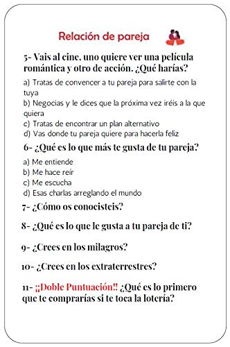 - ⤠PARA QUIEN ā¤: Este juego estĆ” pensado tanto para parejas que llevan mucho tiempo como para parejas recientes. Es divertido y favorece el diĆ”logo y el debate. Es ideal para regalos de aniversario para parejas para tener una cena romĆ”ntica y a la vez divertida. TambiĆ©n es versĆ”til ya que permite jugar con otras parejas de amigos.