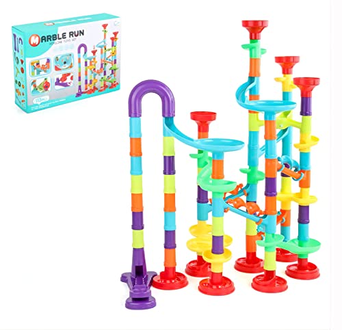 Sipobuy Mármol Juego De Pistas para Canicas De Carreras, Juguetes De Construcción De Tuberías De Aprendizaje Educativo para 4 5 6 7 8 Años De Edad, Niños Y Niñas (113pcs)