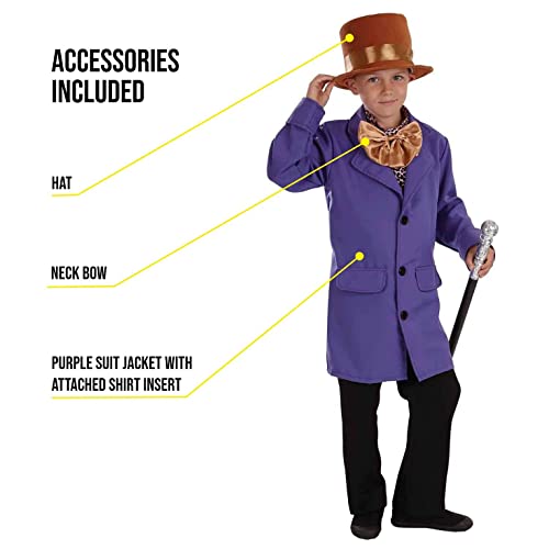 - Incluye disfraz de bar Wonka ganador de Roald Dahl, morado, con tabardo