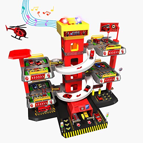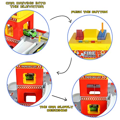 Fajiabao Garaje Parking Juguetes Coches Infantil - Parque de Bomberos con Pista de Coches 4 Camión de Bomberos Juguete 8 Pequeños Coches de Juguetes Niños Niñas 3 4 5 6 Años