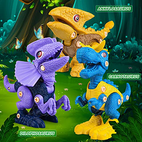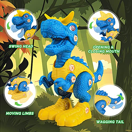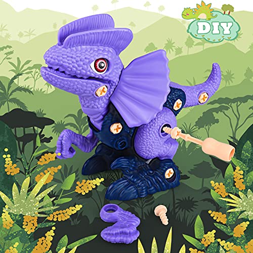 Auney Dinosaurios Juguetes con Taladro Eléctrico, Juego Construccion Dinosaurios, DIY Construcciones Juegos de Dinosaurios para Niños