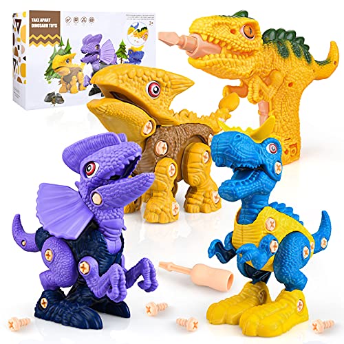 - 【Dino STEM Toys】 - Este juego de juguetes de dinosaurio para desmontar DIY incluye 3 dinosaurios, 1 taladro eléctrico de dinosaurio, 2 brocas, 3 destornilladores manuales y tornillos. El taladro eléctrico viene con 2 brocas diferentes que se pueden reemplazar a voluntad, y funciona con 2 pilas AA, pilas no incluidas en el paquete.
