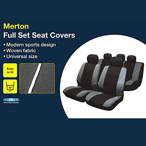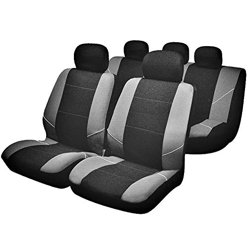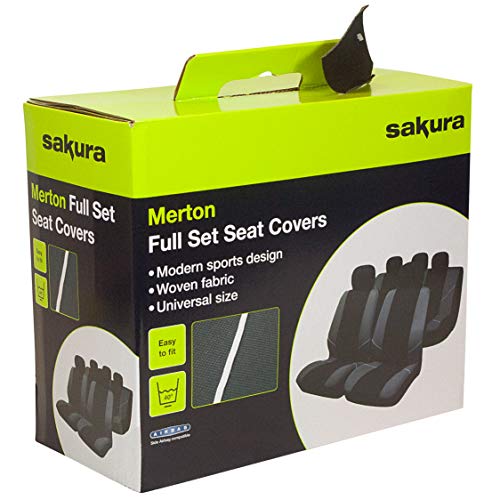 Sakura Merton By0802 - Fundas para Asientos y Reposacabezas de Coche, Juego Completo Universal, Dobladillos Elásticos, Compatibles con Airbags Laterales, Aptos para Lavadora, Color Negro y Gris