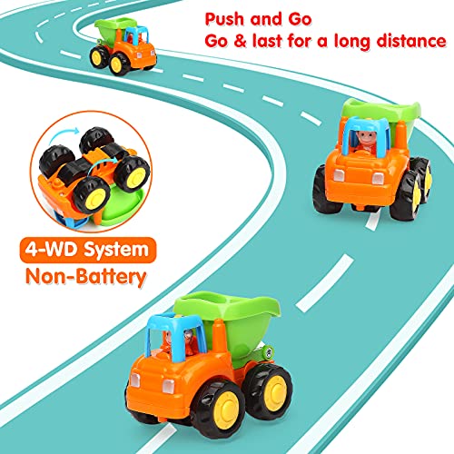 - 4 juegos de juguetes para camiones: incluye 4 vehículos de construcción: tractor, mezclador de cemento, volquete, excavadora. Grandes juguetes para que los niños aprendan diferentes tipos de vehículos.
