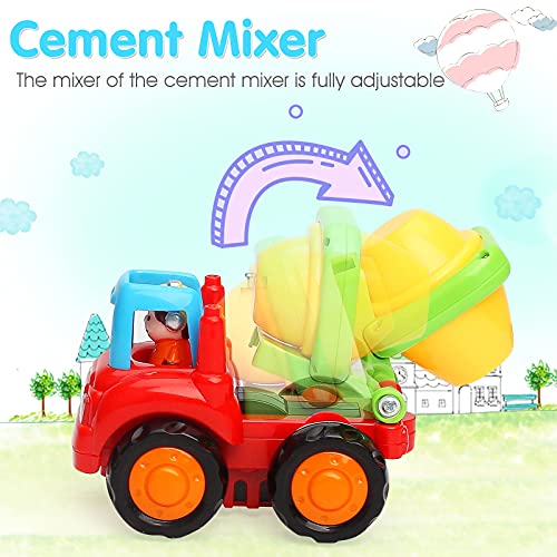 TINOTEEN Coche de Juguete para Bebé, Friccion Vehículos de Construcción de 1 2 3 Años Niños 4 Juegos de Camión,Tractor,Niveladora, Camión del Mezclador