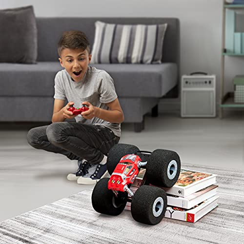 - Seguro y divertido para interiores: las ruedas de espuma sĆŗper suaves de Stunt Shot hacen que sea diferente de cualquier otro RC. Se conduce sobre y sobre cualquier cosa con facilidad y no arruina paredes, muebles o rayarĆ” los suelos.