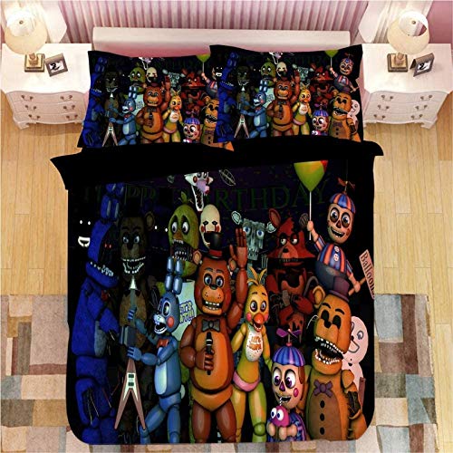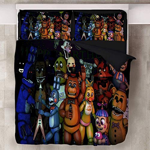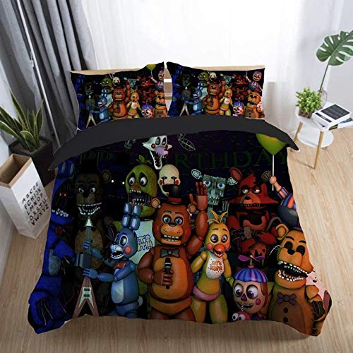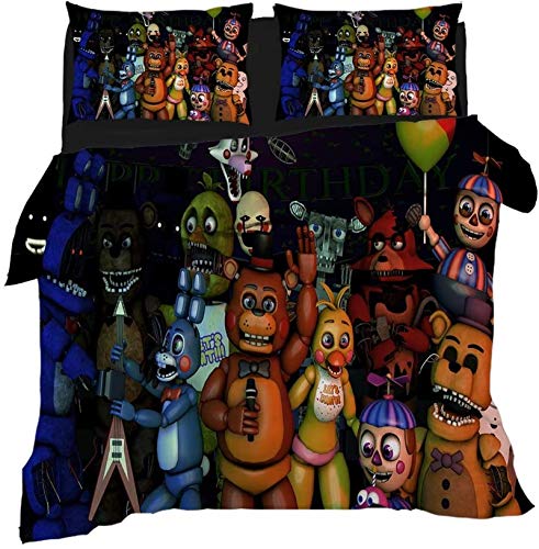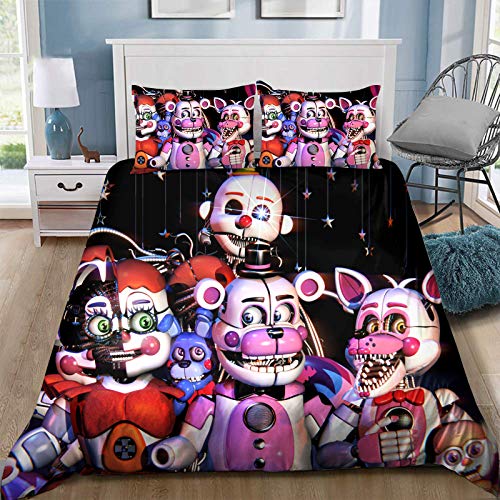 Five Ni-ghts at Fre-ddy's - Juego de funda de edredón para niños, funda de edredón de 3 piezas, 100% microfibra lavada, funda de edredón FNAF con diseño de dibujos animados + 2 fundas de almohada