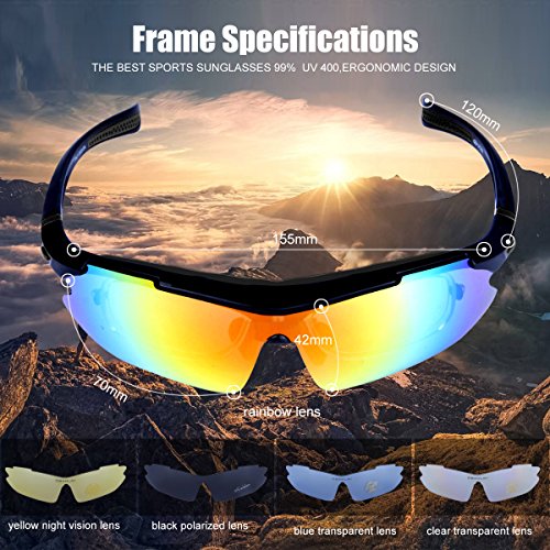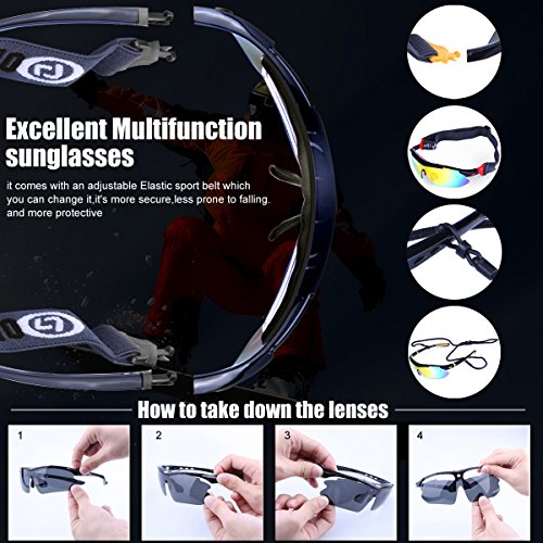 ShareWe Gafas de Ciclismo Unisex Gafas de Sol de Deportivas Polarizadas 5 Lentes Intercambiables para Deporte y Aire Libre Ciclismo Conducir Pesca Ski Esquiar Golf Correr (Negro)
