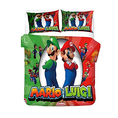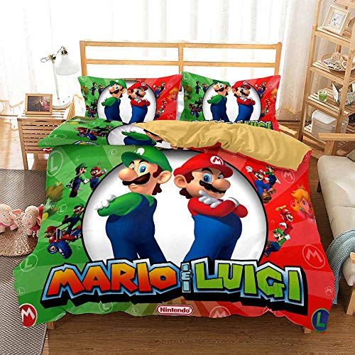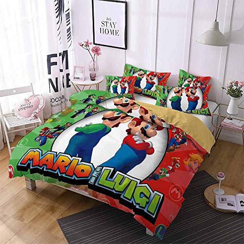 Juego De 3 Fundas De Edredón De Fibra Larga De 60 Piezas, Super Mario Odyssey De Puro Algodón Y Satén A Juego ((180x220 cm)-Cama de 105/135,Estilo 02)