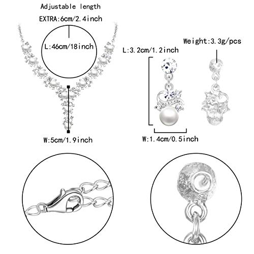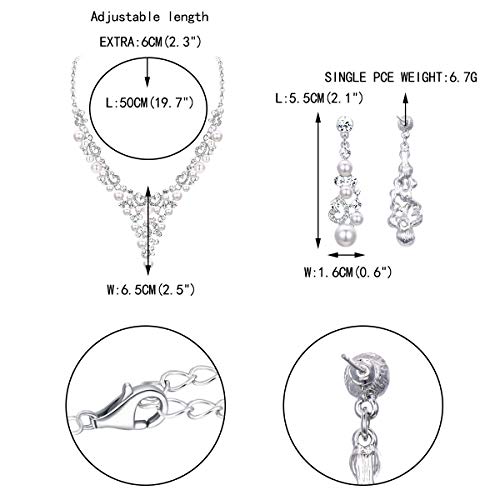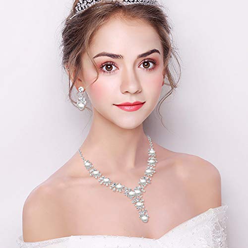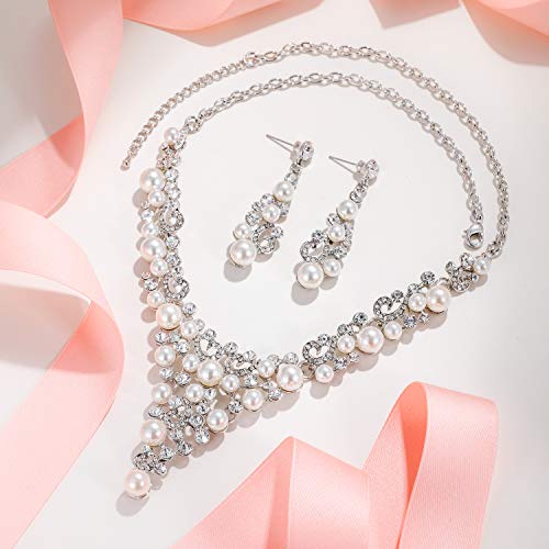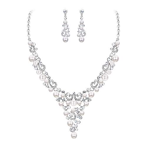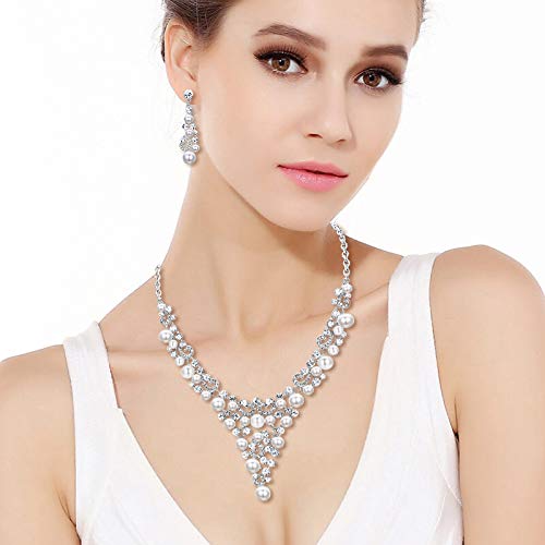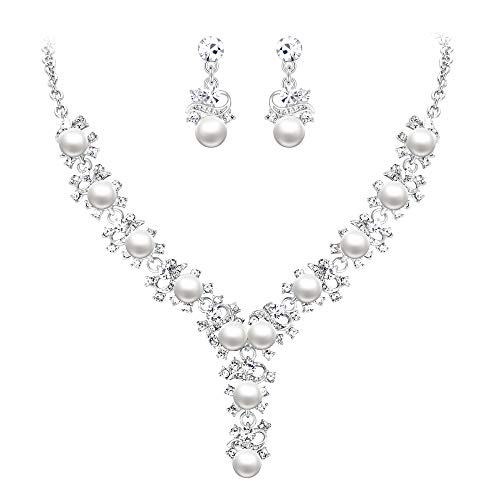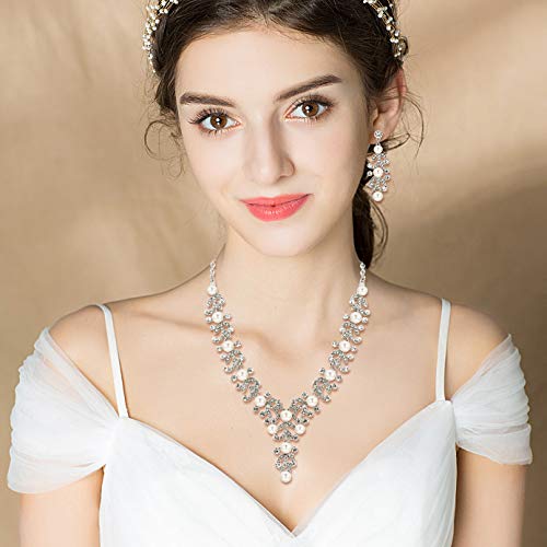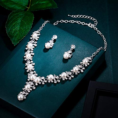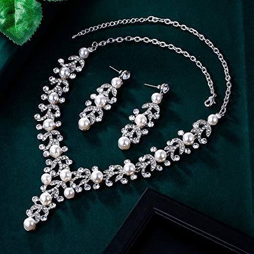 EVER FAITH Juegos de Joyas para Mujer Cristal Perla Simulada Y Figura Flor Vid Claro Tono Plateado Collares Pendientes Conjunto