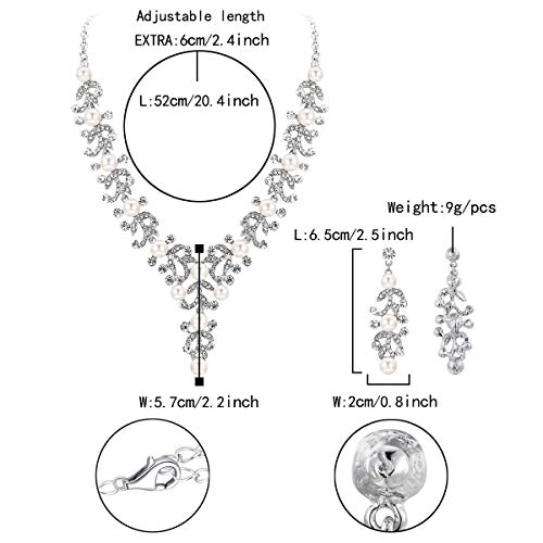 EVER FAITH Juegos de Joyas para Mujer Cristal Austríaco Perla Simulada Flor Hoja Vid Claro Tono Plateado Collares Pendientes Conjunto