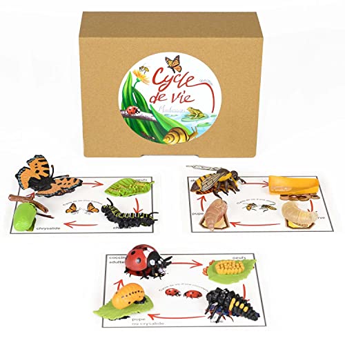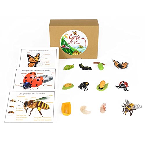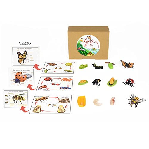 - Un kit completo: podrás encontrar en tu kit 3 insectos: mariquita, mariposa, abeja. Las tarjetas a doble cara con la representación de insectos en un lado y el sentido de ciclo de vida en el otro lado para una mejor asimilación. Las tarjetas sólo están en francés.