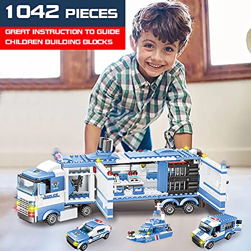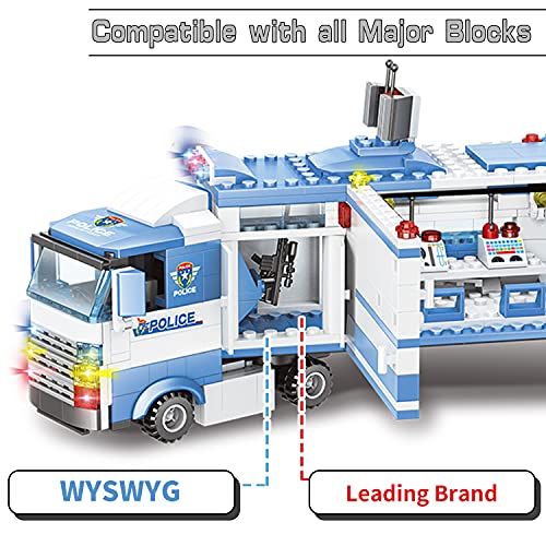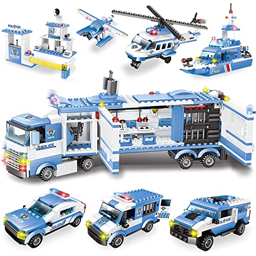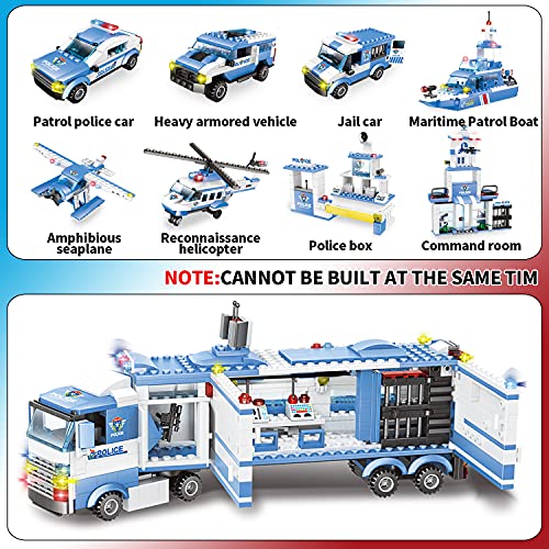 WYSWYG City Police Toy Building Blocks, 1042 Piezas 8 en 1 Comisaría de policía con Coche de policía y helicóptero, Juego de Bloques de construcción compatibles (Azul)
