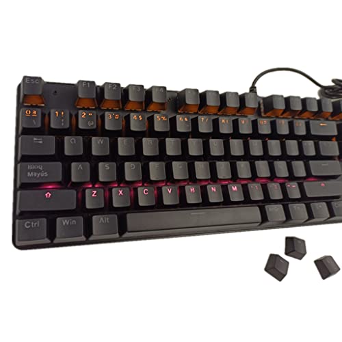 - 【Chip IC para juegos】 Equipado con un chip IC de consola de juegos, respuesta rápida, crea un teclado mecánico de juego real desde adentro hacia afuera. Interfaz tipo C, tecla de inyección de combustible ABS, buena transmisión de luz, sin decoloración. Esperamos brindar a los clientes el mejor servicio.