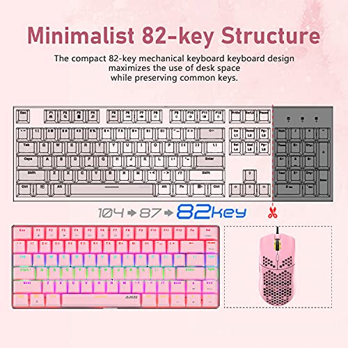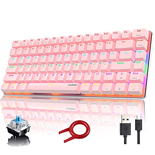 Teclado mecánico, AK33 Rainbow LED retroiluminado USB Cable Teclado para juegos, 82 teclas Teclado compacto para juegos con teclas anti-ghosting para jugadores y tipistas (interruptor azul, rosa)