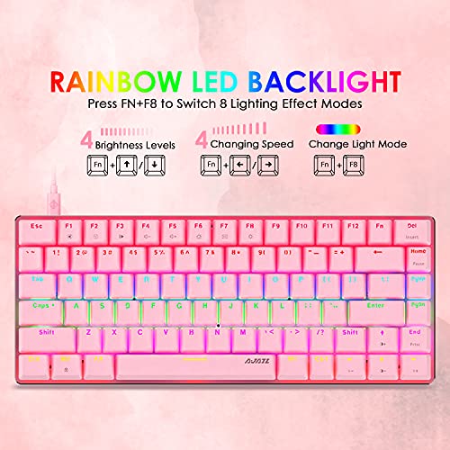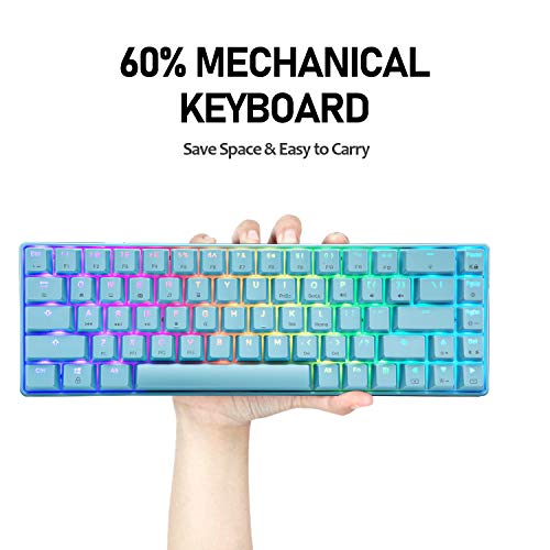 - 【Teclado mecánico portátil 60% verdadero】 Teclas mecánicas profesionales, teclado compacto para juegos de 68 teclas, que le brinda más espacio en su escritorio para mover el mouse o colocar otros dispositivos. Con un diseño ergonómico, el teclado es muy cómodo de usar durante largas sesiones de mecanografía y juegos.