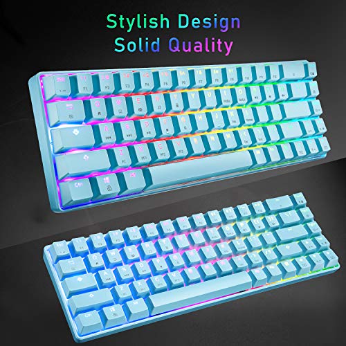 60% Teclado mecánico para juegos tipo C cableado 68 teclas con retroiluminación LED Teclado USB impermeable con retroiluminación RGB Teclas anti-fantasma completas para jugadores y mecanógrafos (azul)